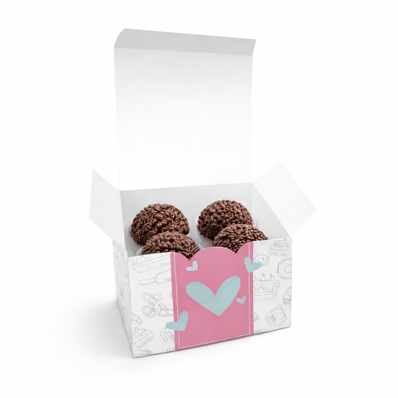 Caixa para doce individual em papel triplex 250 gramas. Seu fundo é automático para otimizar a montagem.